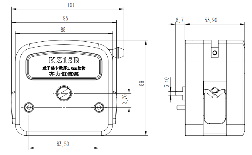 KZ15B 泵头是一款易装型泵头,泵头外壳采用铝合金材料,表面特殊处理,耐腐蚀。滚轮采用不锈钢材质。泵头采用压块与本体分离的结构,可快速更换软管,适用于 1.6 壁厚软管,可适配多种软管,管卡可调节,泵头运行平稳。流量可达 0.0058~2100ml/min。